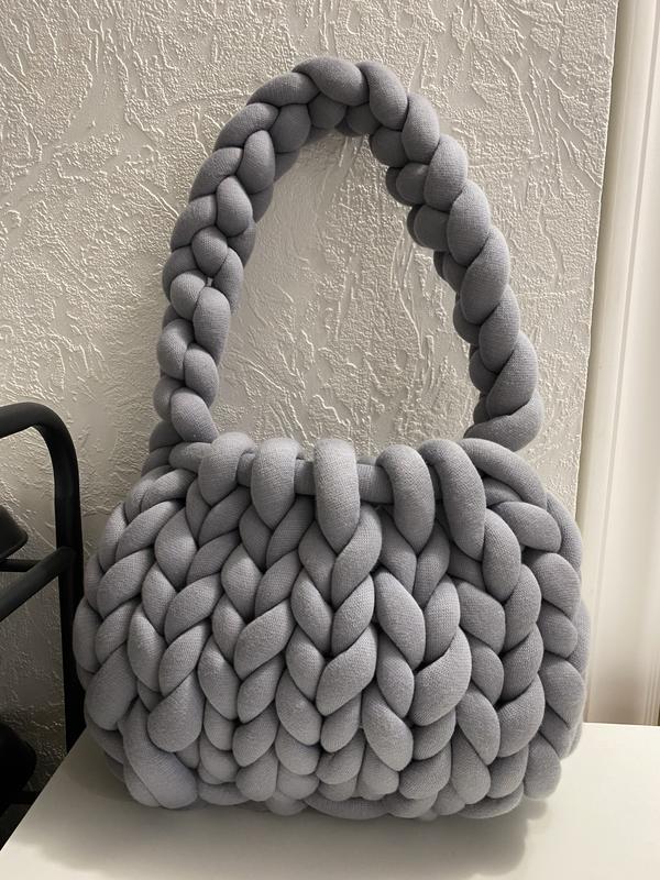 Вʼязана сіра сумка ручної роботи, нова Довжина 36 см, висота 25 см, довжина ручки 55 см