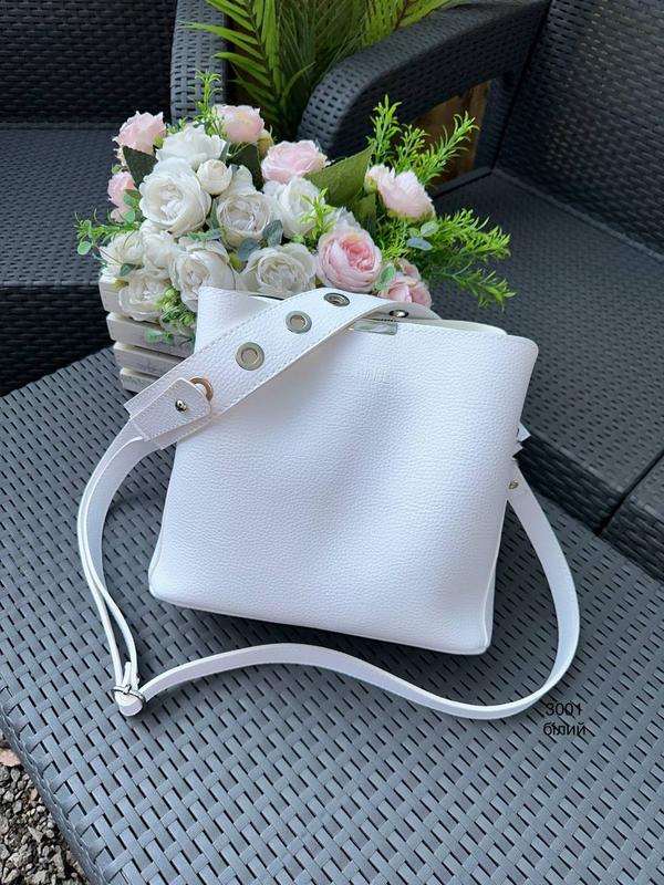 🔸Сумка на три відділення. 🔸Укр.еко.шкіра 🔸ширина по дну 27 см, висота 23 см,дно 12 см. -два знімних ремінця на карабінах. 🔸Короткий ремінець 53 см. 🔸Довгий ремінець регулюється до 135 см. 🔸Сумка на три відділення: -основне відділення на блискавці. -два відділення на магнітах.