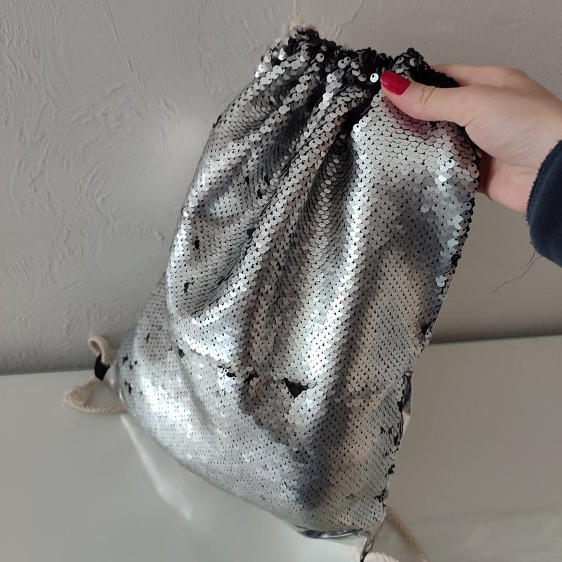 Яркая, сумка для смены в блестящие поворотные пайетки. Ручки/лямки из натуральной прочной веревки Размер 42*34 см В наличии. Быстрая отправка.