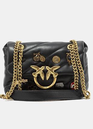 • Размеры: 21 × 14 × 8 см • Материал: Натуральная кожа • Цвет: Черный • Страна: Китай 🇨🇳 • Фурнитура: Золотистая • Логотип: Фирменные птички Love Birds на пряжке • Декор: цепочки, металлические подвески, значки • Ремешок: Двойная металлическая цепочка - можно носить в руке или на плече • Отделение: Основной + внутренний карман • Закрытие: Клапан на магните
