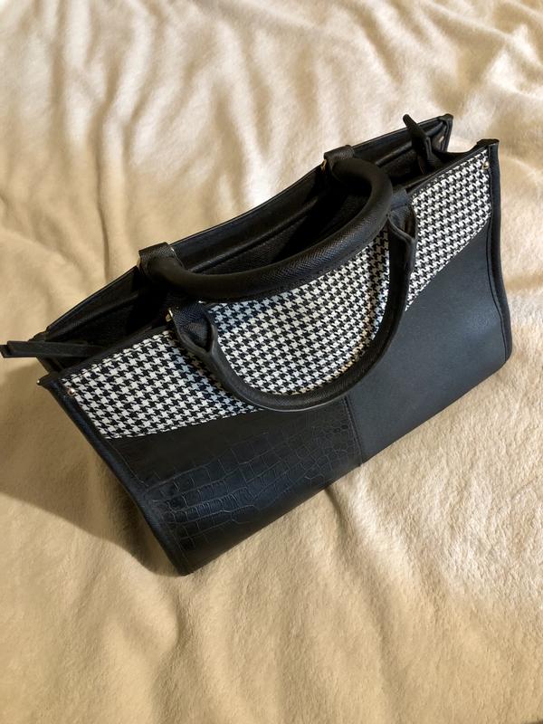 Ищете универсальную сумку, которая подойдёт и для работы, и для повседневных выходов? Эта модель — то, что вам нужно! Дизайн: сочетание классической чёрно-белой "гусиной лапки" и чёрной экокожи под крокодила — элегантно и с характером Форма: строгая, удобная, держит форму — отлично подойдёт для документов, планшета Ручки: плотные, удобные в руке, с золотистой фурнитурой Состояние: отличное, без потертостей и дефектов Размер: [ширина 33,5 × высота 21 × глубина 12] Основное отделение на замке и 2 на кнопке, есть скрытый кармашек. Подойдёт для офиса, учёбы, деловых встреч и даже на каждый день. Одна сумка — десятки образов!