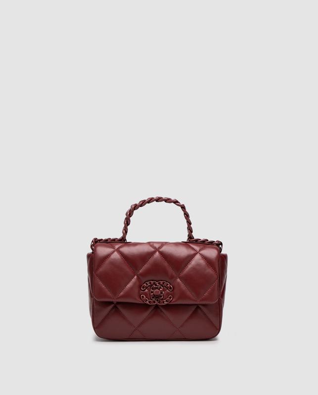 ❤️ 19 Handbag Burgundy (Арт: 99852) ⏺ Розмір: 21 х 14 х 7 см ⏺ Матеріал: Шкіра Сумка виготовлена з м’якої гладкої шкіри з ромбоподібною прострочкою. Всередині одне відділення, також є невеличка додаткова кишеня на застібці. Підкладка з щільного та якісного текстилю червоного кольору. Зачиняється сумка завдяки фірмовому замочку. Ланцюжок для носіння через плече - фіксованої довжини, з вплетеною шкірою. Комплектується в брендовій коробці на магнітах та пильовику, є картка та буклети.