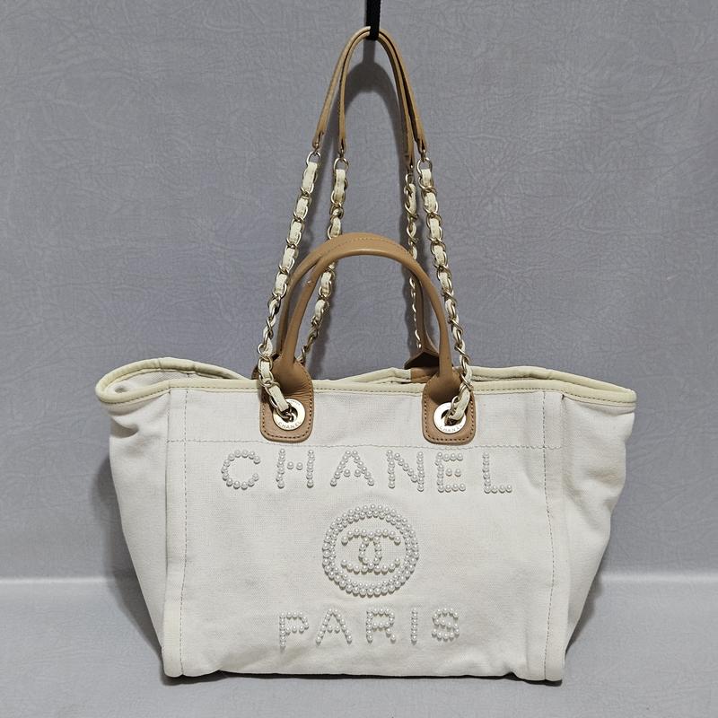 красива сумка Chanel, номерна плотный коттон + ручки из натуральной кожи, р. ширина сверху 43 см, ширина снизу 32 см, высота 26 см, толщина 17 см, высота ручек 12 см, цепочки высота 32 см, Стан 5+, Цена 3800 грн