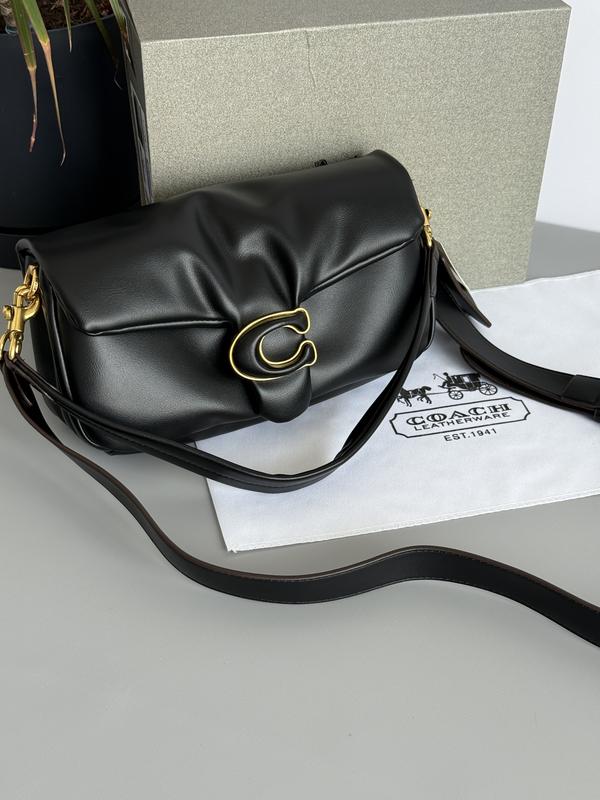 Coach • Модель: Soft Tabby Shoulder Bag • Розмір: 26 х 13 х 7 см • Матеріал: М’яка екошкіра преміум класу • Колір: Глибокий чорний • Фурнітура: Матове золото • Особливість: М’яка форма, ефектна пряжка з літерою “C” • Ремінь: Регульований на плече або кросбоді • Внутрішнє наповнення: Два основних відділення + кишеня на блискавці • Стиль: Елегантна, м’яка, трендова — ідеальна на кожен день 💼✨