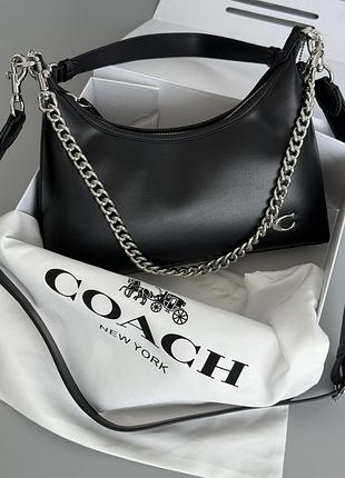 • Розміри: 27 х 20 х 9 см • Матеріал: Гладка екошкіра преміум • Колір: Чорний • Фурнітура: Срібна • Ручки: Регульований ремінь + знімний масивний ланцюг • Відділення: Один основний простір із блискавкою • Особливість: Елегантна форма півмісяця, мінімалізм і розкішна фурнітура — топ під джинси, тренч чи піджак 🤍🖤