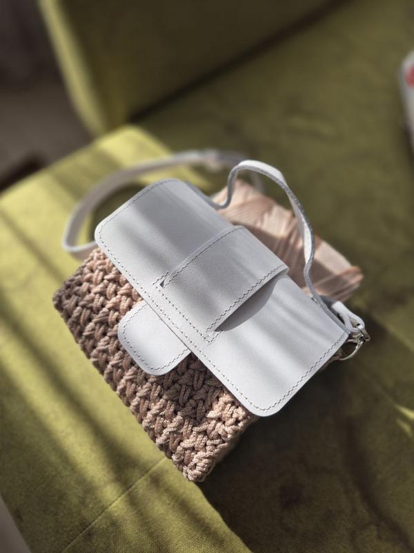 Стильная сумка, идеальная на лето и весну. Светлая, небольшая, ручной работы, с регулируемой ручкой и застежкой на магните