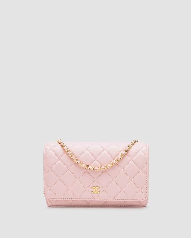 ❤️ Classic Wallet on Chain Pink/Gold (Арт: 99869) ⏺ Розмір: 19 х 12 х 5 см ⏺ Матеріал: Шкіра Сумка виготовлена з м’якої гладкої шкіри з ромбоподібною прострочкою. Всередині одне основне відділення, кишеня на застібці та декілька невеличких кишень для карток. Підкладка з щільного текстилю в рожевому кольорі. Зачиняється сумка на магнітному клапані. Ланцюжок для носіння через плече з вплетеною шкірою. Комплектується в брендовій коробці на магнітах та пильовику, є буклети.