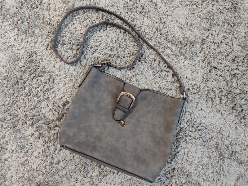 сумка через плечо серого цвета в середине есть дополнительно косметичка на змейке высота 23 ширина 24