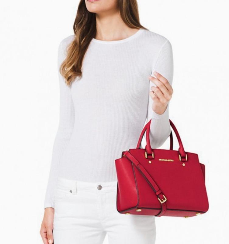 Сумка Michael Kors, длина 32 см, по широкому краю 42 см, высота 26 см, ширина 12 см. Есть дефект виден на последнем фото.