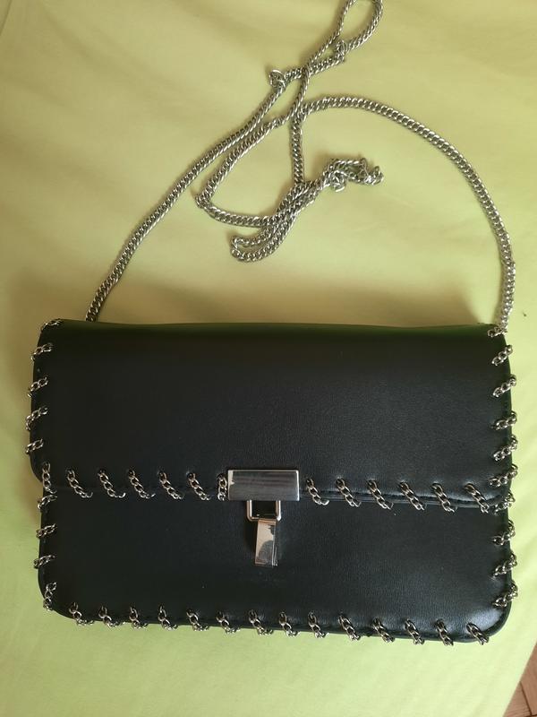 сумка Zara черная на длинной цепочке 21×14 см