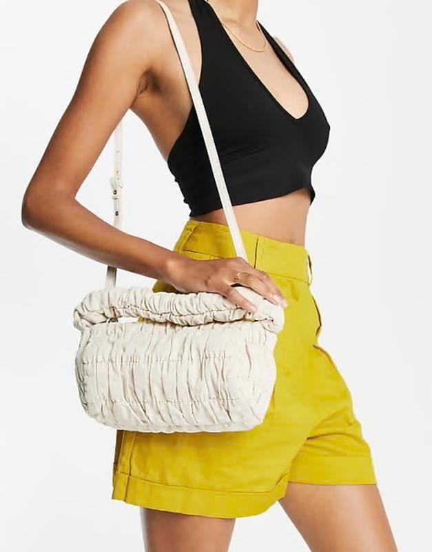 Сумочка Mango з льону, легка та мʼяка, підкладка з бавовни, знімний довгий ремінець.