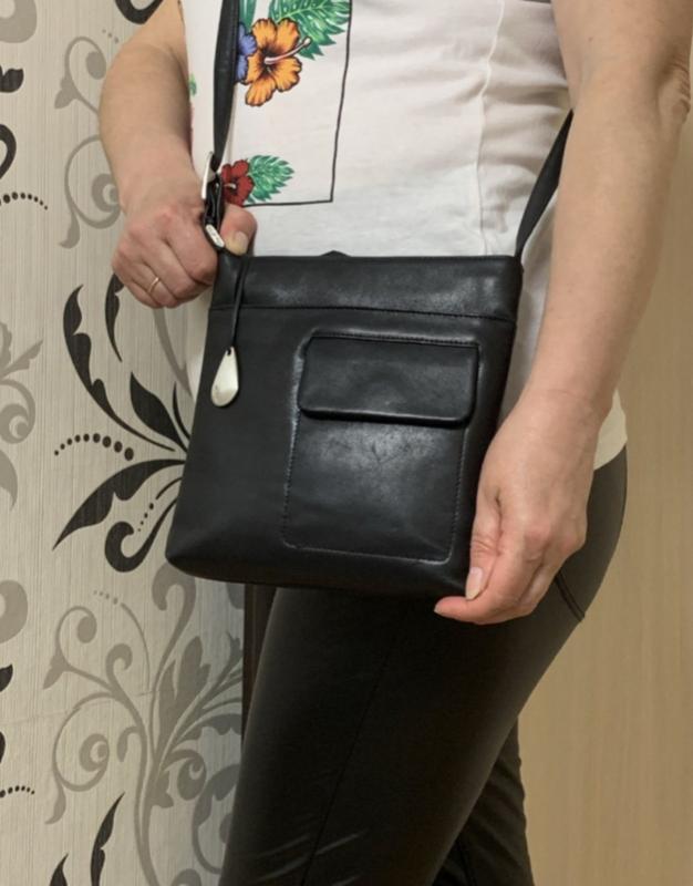 Чорна шкіряна сумка через плече Tula Стан ідеальний Має три відділення та кишені Розмір 20х22 см
