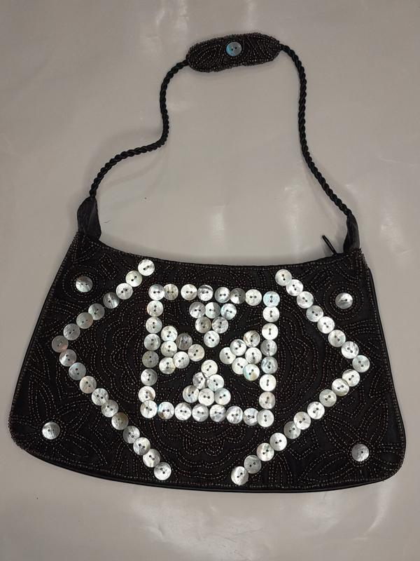 Элегантная сумочка ручной расшивки. Расшитая бисером и пуговицами из натуральной ракушки. размер: д = 30 см, ш = 17 см материал: атласный шелк