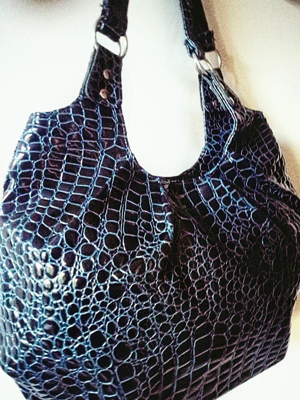 Универсальная сумка на каждый день из искусственной змеиной кожи. Размер:39*16*25см,цвет-синий. Застежка: замок-молния. Детали: пара ручек длиной 52см, внутренний карман 19см на "молнии".