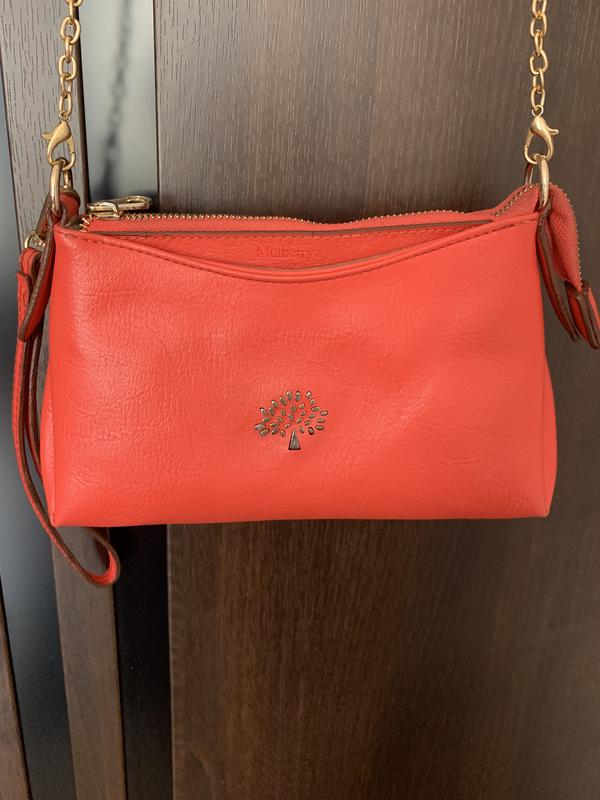 Червона сумочка. Є зовнішня кишеня і внутрішня. Висота -16см, ширина-25 см