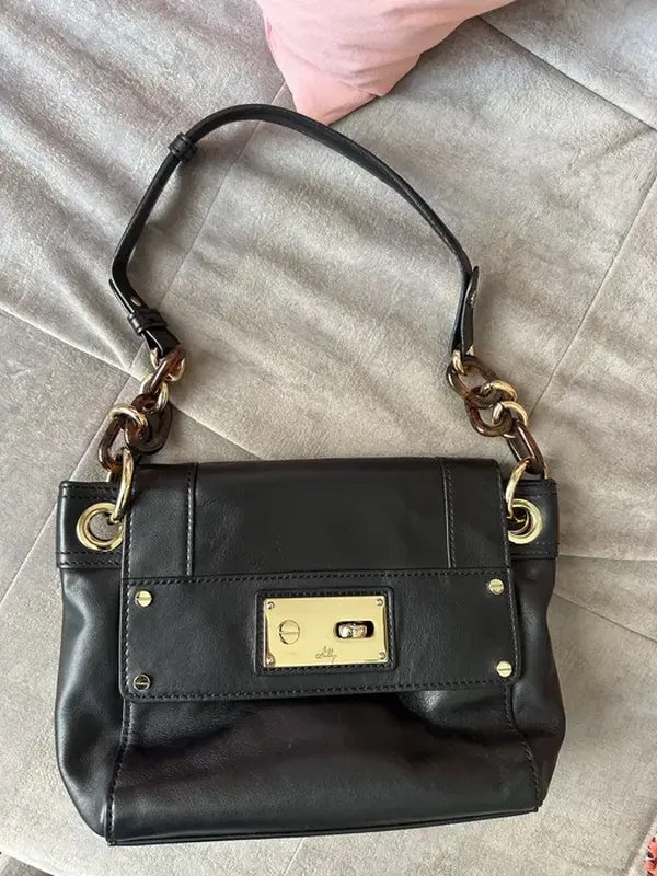 Черная кожаная сумка Milly. Мягкая кожа в отличном состоянии, стильная ручка - цепочка, изнутри чистая и красивая шелковая яркая красная подкладка, очень вместительная. Открытка осуществляется по Новой почте, или Мист Экспрессс. По предоплате + наложен платеж, или по полной предоплате на карту. С доставкой и оплатой от Шкафы - не работаю.