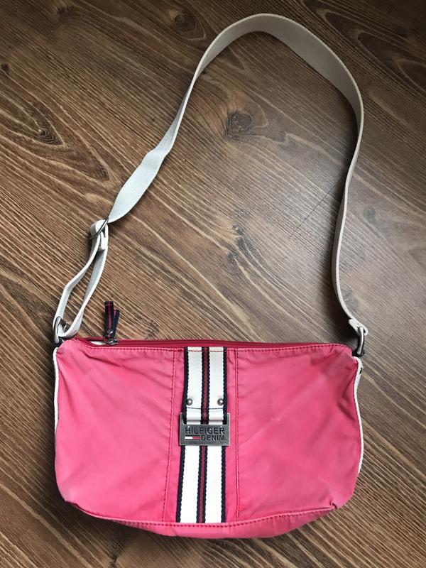 Сумка з довгою ручкою Tommy Hilfiger Заміри на фото, довжина ручки регулюється, плащівка, є втрата кольору