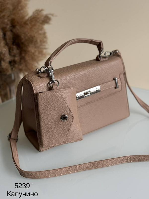 Женская сумка сумочка маленькая в комплекте с кошельком свет коричневая кожаная из эко кож...