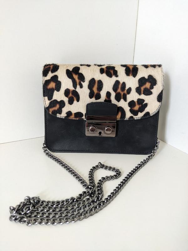Сумка из натуральной кожи и меха. Италия. высота 16 длина 20 дно 8 цепочка 110