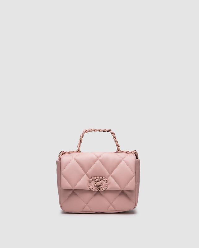 ❤️ 19 Handbag Pink (Арт: 99883) ⏺ Розмір: 21 х 15 х 7 см ⏺ Матеріал: Шкіра Сумка виготовлена з м’якої гладкої шкіри з фірмовою ромбоподібною прострочкою. Всередині одне основне відділення та додаткова кишеня на застібці. Підкладка виконана з щільного текстилю, має металевий логотип. Зачиняється сумка на фірмовому замочку. Ланцюжок для носіння через плече - фіксованої довжини. Комплектується у брендовій коробці на магнітах та пильовику, є буклети та картка.