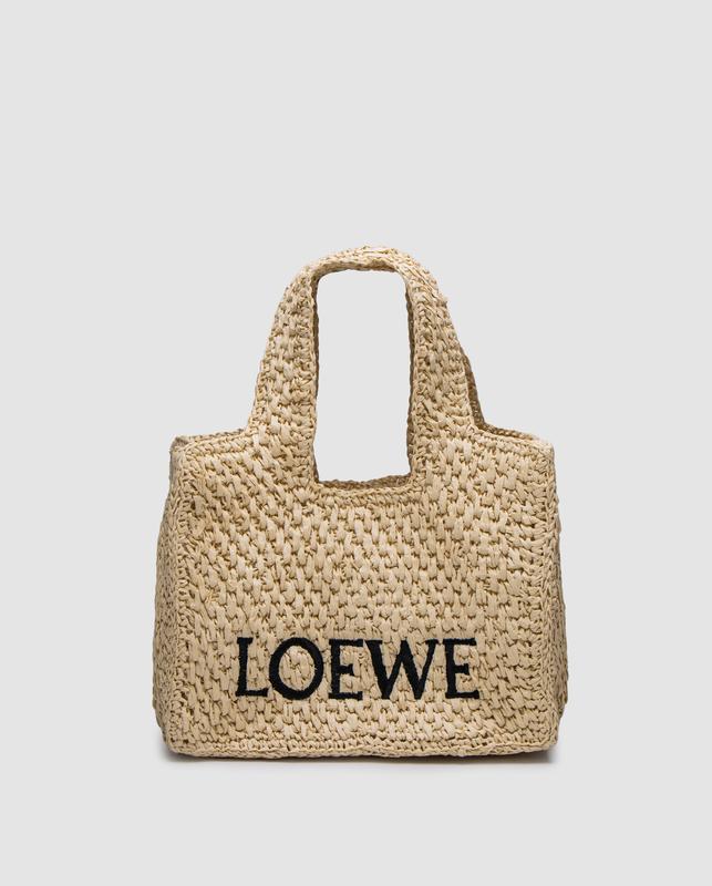 Loewe Medium Font Tote in Raffia (Арт: 99887) | Размер: 31 х 21 х 17 см | Материал: Рафия Сумка изготовлена из рафии с фирменной плетеной текстурой, спереди большой логотип бренда. Внутри одно основное большое отделение. Имеет две короткие широкие ручки для ношения в руке или на плече. Комплектуется в брендовой коробке на магнитах и пыльнике, есть буклеты.