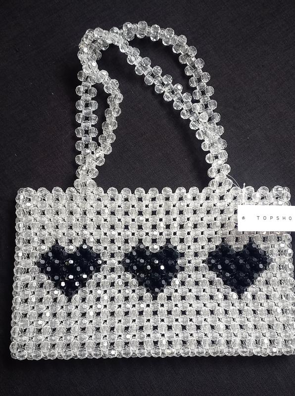 сумка бренда topshop, сплетенная из больших пластиковых бусин. Очень стильно смотрится с летними луками