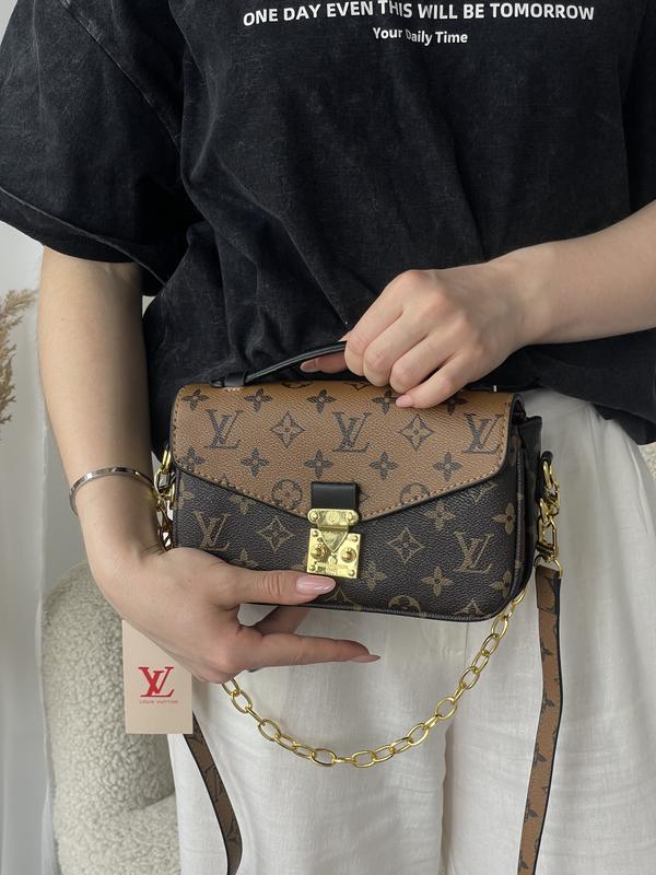 Сумка Pochette Metis East West Monogram Сумочка имеет три раздельных отделения внутри, одно из них на молнии. Снаружи дополнительное отделение на молнии. Текстильная подкладка с нашитым логотипом, присутствуют серийный номер и бирка с QR-кодом. Сумку украшает массивная металлическая цепочка, которую можно использовать как ручку для ношения на плече (цепочка сьемная). Вся фурнитура – металлическая и брендированная. - Размер: 21х14х9см - Материал: эко-кожа - Регулируемый ремешок, максимальная длина - 115 см ⭐️ Коробка и пыльник в комплекте код монограм 20458-1 коричневый 20458-2