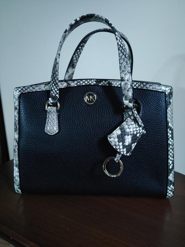 Новая черная кожаная сумка Michael Kors. Оригинал. Без длинного ремешка. Сумка в отличном состоянии, но имеется еле заметная царапинка, которая практически не видна. Смотрите фото 7 и 8. Размеры: 17х24х11см