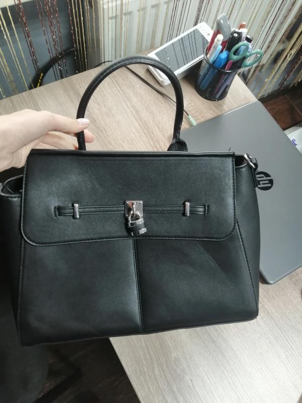Сумка черного цвета. Мягкая, но держит форму. Внутри имеет три отделения за счет посередине кармана. Также есть карман сбоку отдельно, виден на фото. Нова. Є нюанс на руці, при носці не видно. Можно носить на длинной руке, но в наличии нет, при переезде где-то потерялась. Оригинальная и трендовая в этом сезоне. На останньому фото видно нюансы. В цене учтены.