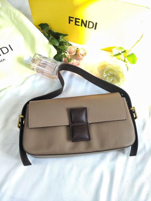 Размер: 26 х 15 х 6 см Материал: кожа Сумка имеет одно большое отделение. Внутри логотип Fendi, также логотип на фурнитуре. Комплект: фирменная магнитная коробка, пыльник.