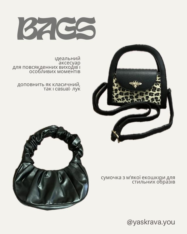 сумочки чорні в чудовому стані з лео принтом 350грн з екошкіри 250грн якщо хочеш придбати, скоріше пиши нам в дірект✨