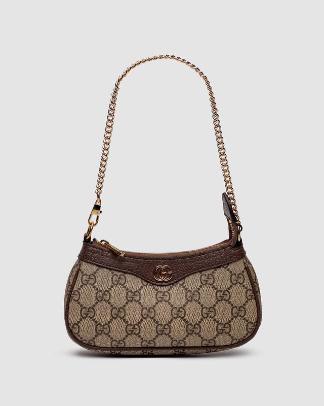 ❤️ Ophidia Gg Small Handbag (Арт: 99401) ⏺ Розмір: 19 х 10 х 4 см ⏺ Матеріал: Шкіра ⏺ Опис: Сумка виготовлена з гладкої шкіри з фірмовою канвою. Всередині одне відділення, також є кишеня. Підкладка у сумки з щільного текстилю. Зачиняється на на застібці. Фурнітура металева та брендована. В комплекті є ланцюжок для носіння у руці та через плече. Комплектується в брендовій коробці на магнітах та пильовику.