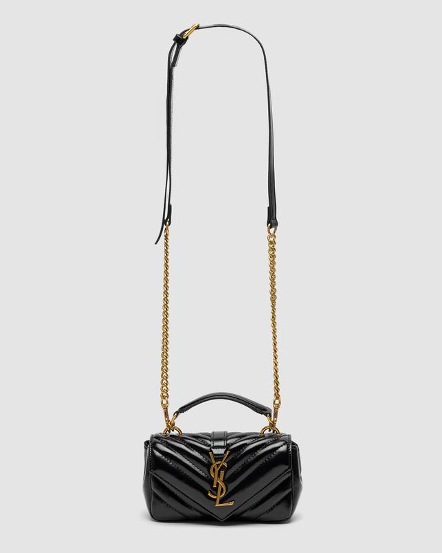 ❤️ College Mini Quilted Crossbody Bag Black (Арт: 99574) ⏺ Розмір: 20 х 10 х 5 см ⏺ Матеріал: Шкіра Сумка виготовлена з гладкої лакованої шкіри, прострочена. Всередині одне відділення, є невеличка шкіряна кишеня. Підкладка виконана з щільного ребристого текстилю. Зачиняється відділення на магніті-клапані. Фурнітура металева, брендована. Ланцюжок на карабінах, має шкіряну ручку з регулюємою довжиною. Комплектується у брендовій коробці на магнітах та пильовику, є буклети.