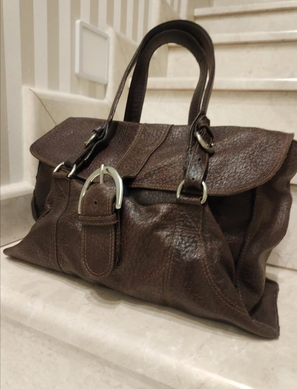 Производитель - Италия. Бычья кожа. Цвет может отличаться от фото Состояние очень хорошее. На фото сумка не в наполненном виде, кожа ближе к мягкои, поэтому сверху не очень держит форму. Дно сумки 41 х 11 см Высота по бокам в ровном состоянии 27 Ручки 65