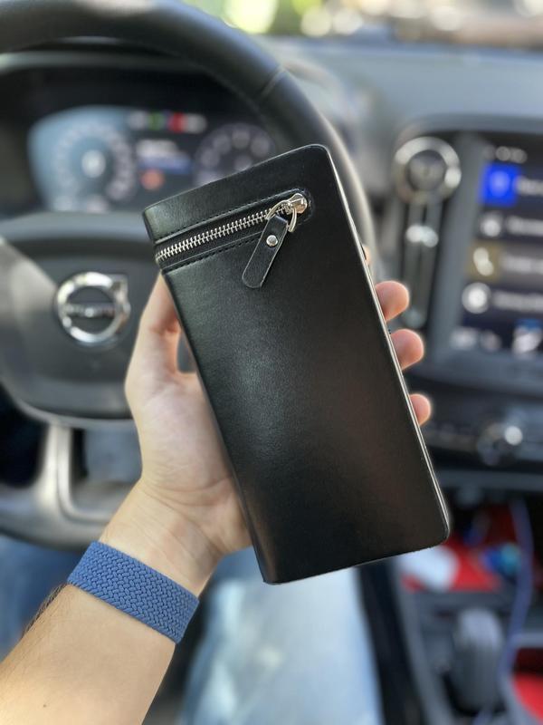 Материал: качественная PU кожа 4 отделения для купюр внутри Отделение для карт Отделение для монет Один внутренний карман на молнии Дополнительный внешний карман на молнии Размеры: 19.5х9.5 см