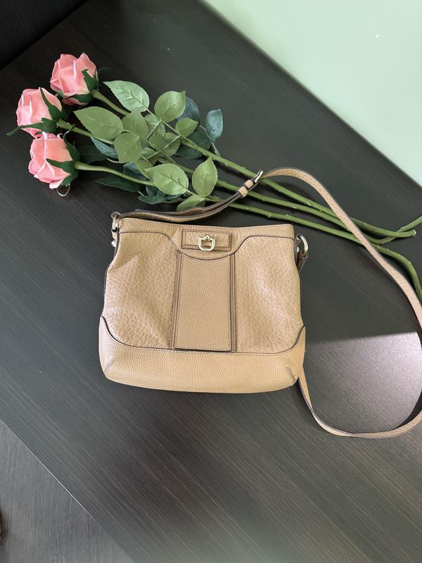 Сумка американсого бренда Donna Karan , цвет бежевый,сумка имеет одно основное отделение на молнии,в котором есть доп.карман на замке,материал верха-натуральная кожа , высота 22, глубина 12, длина 27).