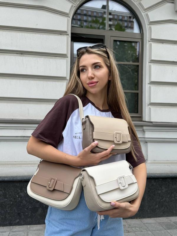 829043 Останні в наявності ❤️🔥👜 Сумка 2х кольорова декор Пряжка Ціна: 1180 грн Колір: чорний ; беж; молочний; капучино ремінець регулюється довгий Матеріал: екошкіра Іде на кнопці, всередині на змійці Розмір : 23/16