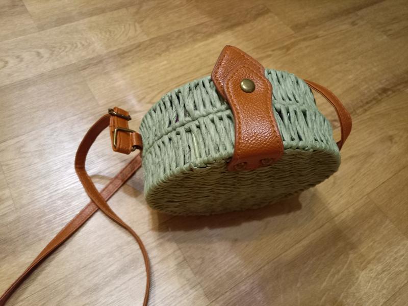 Сумка из натурального ротанга на длинном ремешке оливкового цвета. Стильная, модная, летняя
