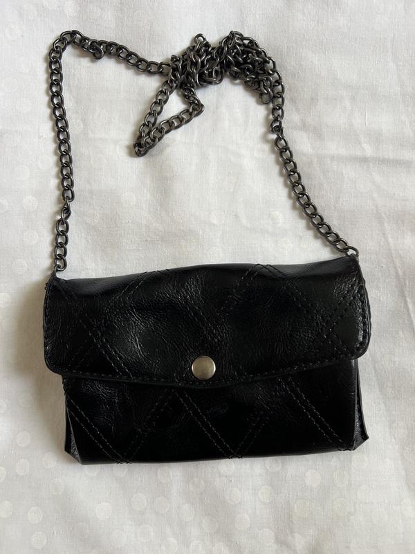 Жіноча міні сімка ZARA, чорного кольору, шкіряна розмір 10см на 17см