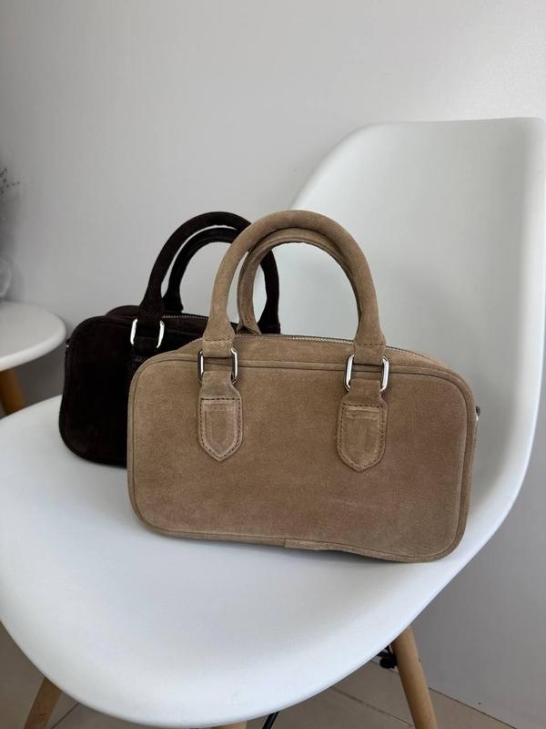 Стильна сумка з натурального замшу. Защібається на змійку, 1 відділення, бокові кармани на змійці та без матеріал: натуралний замш фурнітура: срібло кольори: тауп, шоколад розміри: 25*9*14 В комплекті довгий ремінець-максимальна довжина 135 см (регулюється) та зйомний брелок виробник: Україна (Дніпо)