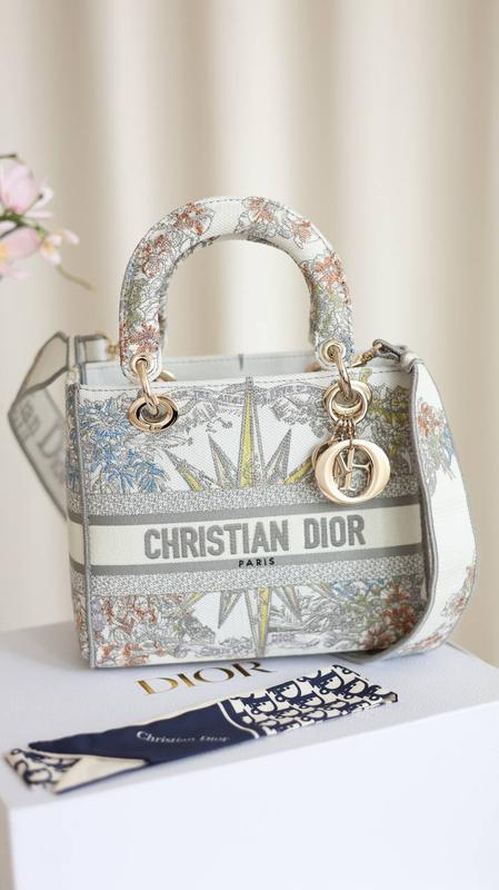 C HRISTIAN DIOR Medium D-Lite White Star Премиум качество Арт: 1012P Описание: Размер: 24х20х11 Материал: Текстиль Сумка выполнена из хлопка с фирменной вышивкой. В сумке одно большое отделение, которое закрывается текстильным капюшоном. В середине имеет боковой открытый кармашек и на молнии кармашек. Подкладка текстильная. Украшена металлической подвеской. Сумку можно носить как в руке, так и на плече, благодаря съемному текстильному плечевому ремешку. Фурнитура золотистого цвета. Упаковка: брендовая коробка на магнитах, пыльник, платок, буклеты.