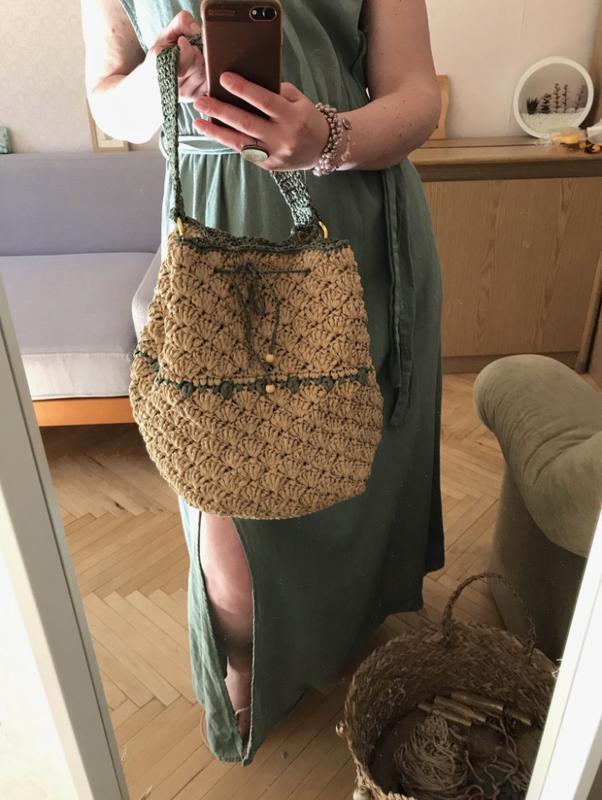 Жіночка літня сумочка з рафії Колір - крафт з хакі Вмістка , всередині підкладка , кишені, магнітний замочок Висота 30 см Ручна робота Є відео !
