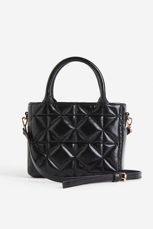 Легко м'яка, стьобана сумка. Знімний регульований плечовий ремінь, дві короткі ручки зверху та внутрішнє відділення на блискавці. На підкладці. Вага: 230 г Тип аксесуара: Сумка через плече Опис: Чорний, Однотонний Імпортовано: Так