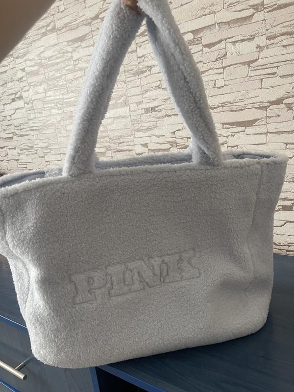 Пухнастий ніжно-блакитний шопер від Pink. Вмісткий, з двома карманами всередині. Новий
