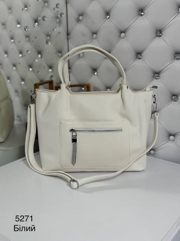 Женская сумка большая белая кожаная из кожзама из эко кожи с двумя длинными ручками и реме...