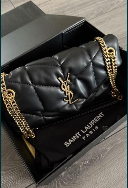 Черная сумка пуффер Ysl Натуральная кожа Все лого Качество люкс Фурнитура метал золотого цвета Комплект коробка пыльник цена 200$