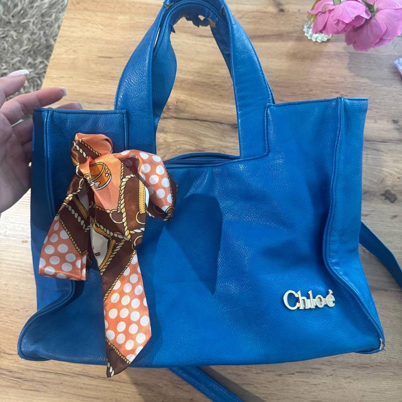 Насичений синій колір Є додатковий ремінь Декор:хустинка, яку можна знімати Є нюанс: на ручках (злізла шкіра) Фурнітура ціла