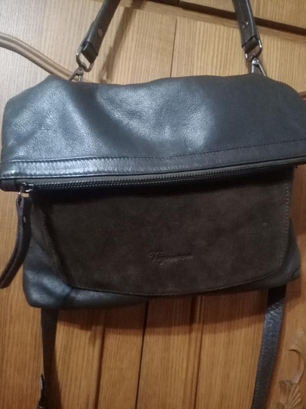 Сумка бренда "Vigneron", натуральная кожа, сделанная в Италии. НОВАЯ - неношена - идеальное состояние! Большое основное отделение закрывается на молнию, внутри карман на молнии и 2 открытых кармана. Спереди большой открытый карман, закрывающийся клапаном сзади с помощью магнитной застежки. Снаружи спереди - гармонично подобранный по цвету карман из замши с тиснением бренда. Ремень регулируется, можно носить через плечо (crossbody). Размеры Ширина х Высота 35 х 25 см