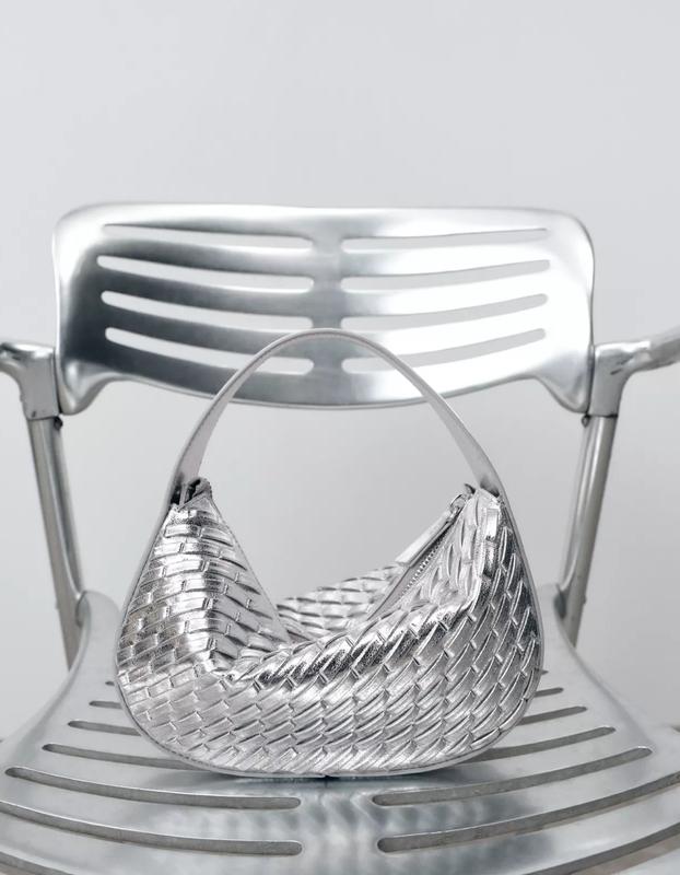 Вязаная сумка с металлизированным эффектом. Широкая ручка. Съемный ремешок через плечо. Застежка на металлическую молнию. Высота x ширина x глубина: 12 x 20 x 4 см