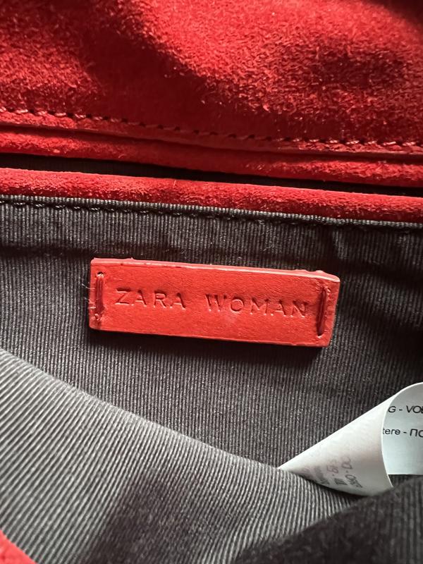 Сумка Zara, шкіряна червоного кольору, є дефект на останньому фото